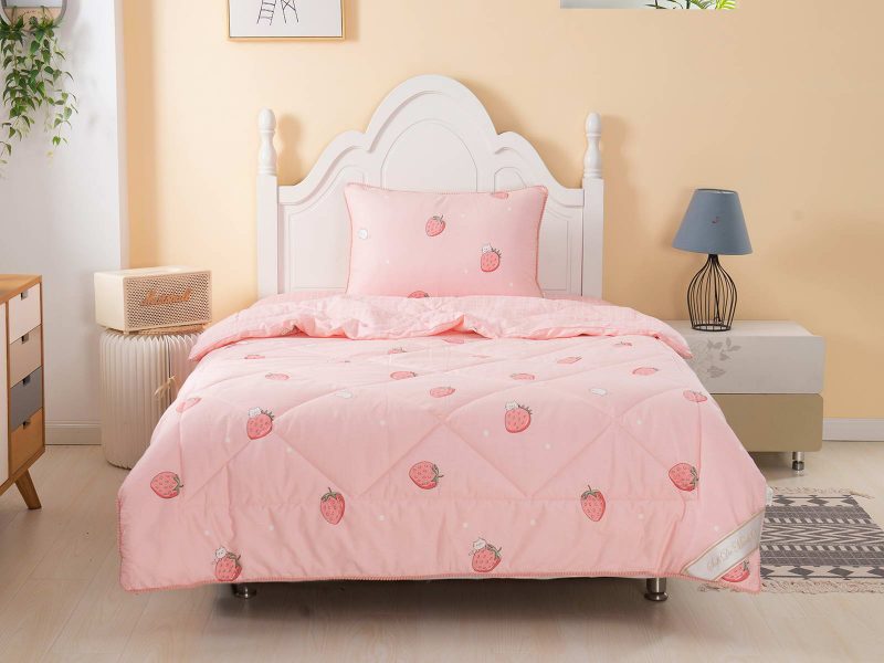 В комплект входят простыня, наволочки и одеяло. Одеяло простеганное, легкое и воздушное, его можно стирать в стиральной машине. Благодаря микроволокну в составе наполнителя для одеяла, оно всегда принимает свою начальную форму.