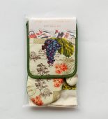 Набор для кухни от бренда Sofi de Marko состоит из трех предметов: кухонное полотенце, прихватка и варежка.