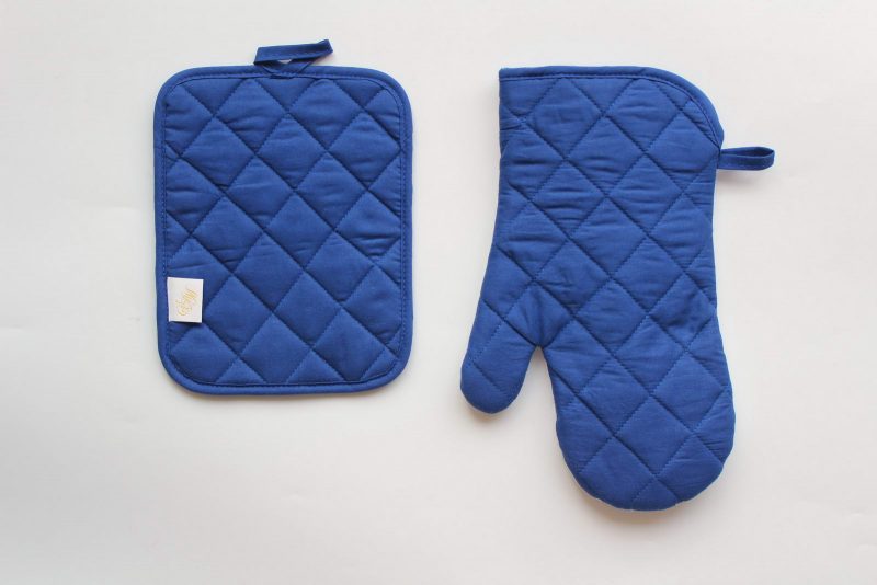 Набор для кухни от бренда Sofi de Marko состоит из трех предметов: кухонное полотенце, прихватка и варежка.