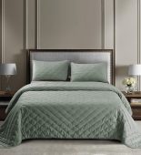 Покрывало Селена выполнено в девяти оттенках: пудра, антрацит, беж, изумруд, капучино, пепел роза, серебро, стоун, терракот. Они подойдут практически для любого интерьера, от классического, до модерна или романтического. Стеганое бархатное покрывало будет необыкновенно смотреться на вашей постели, в дополнение в комплект входят две наволочки того же цвета.
