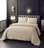 Лёгкое стеганное покрывало изготовлено из 100% вискозы. Стежка придает ткани объемную фактуру и задаёт вертикальный ритм. Декоративный кант в тон изделию добавляет изящества и стабилизирует ткань.