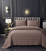 Лёгкое стеганное покрывало изготовлено из 100% вискозы. Стежка придает ткани объемную фактуру и задаёт вертикальный ритм. Декоративный кант в тон изделию добавляет изящества и стабилизирует ткань.