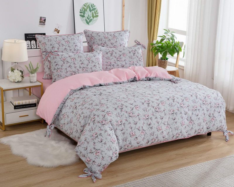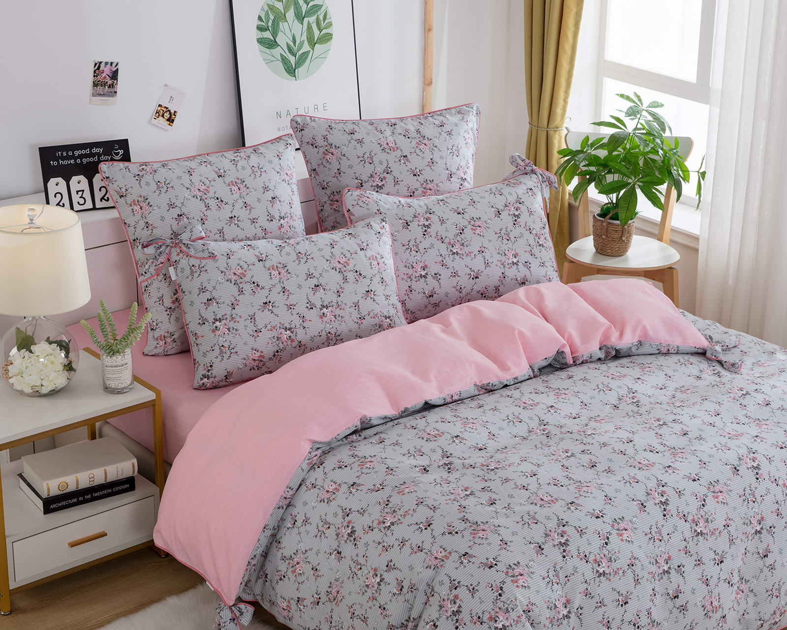 В комплект входят простыня, наволочки и одеяло. Одеяло простеганное, легкое и воздушное, его можно стирать в стиральной машине. Благодаря микроволокну в составе наполнителя для одеяла, оно всегда принимает свою начальную форму.